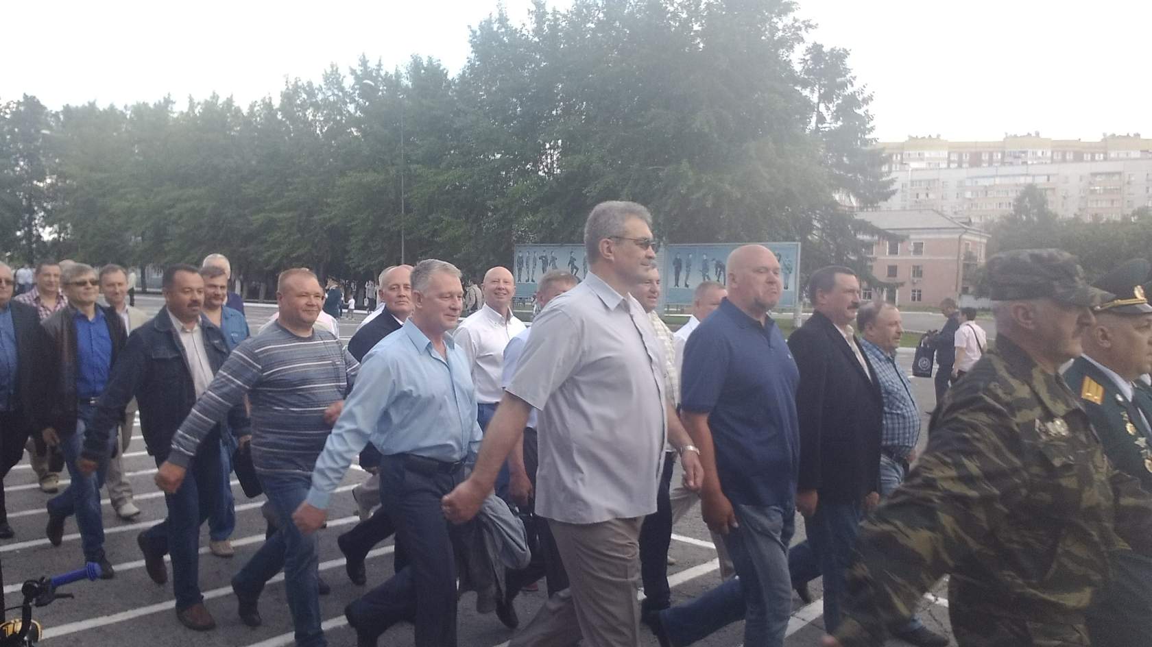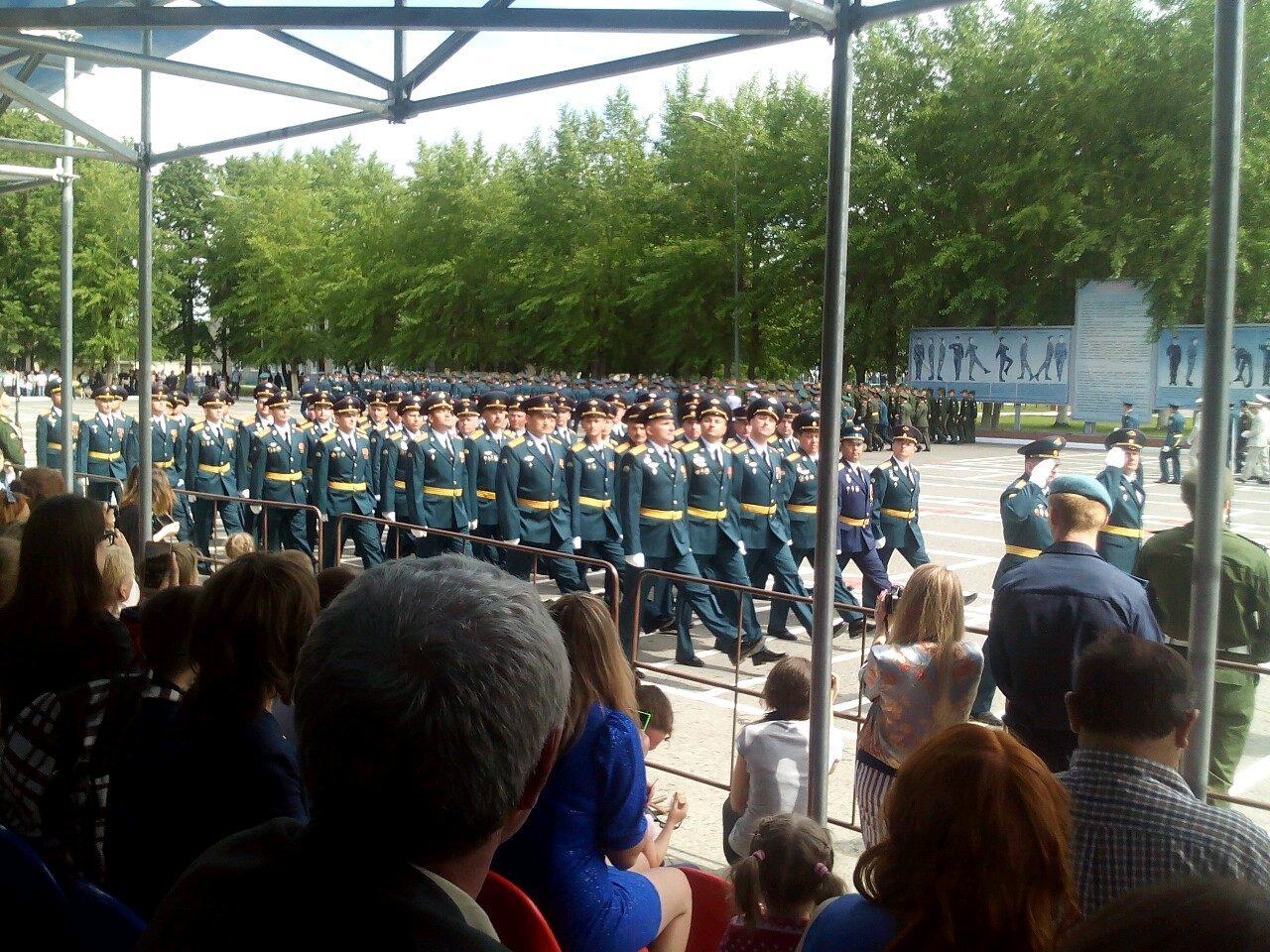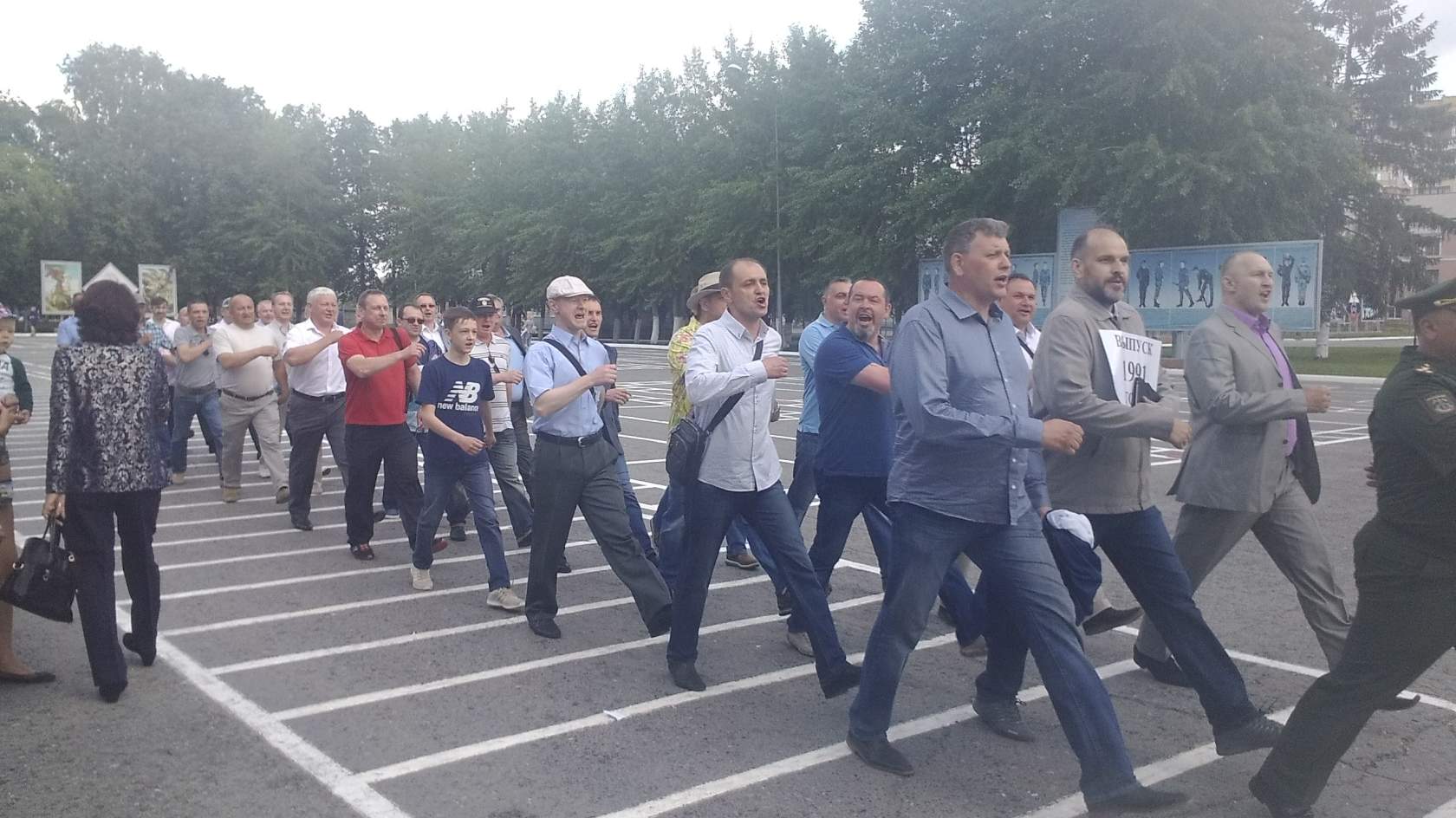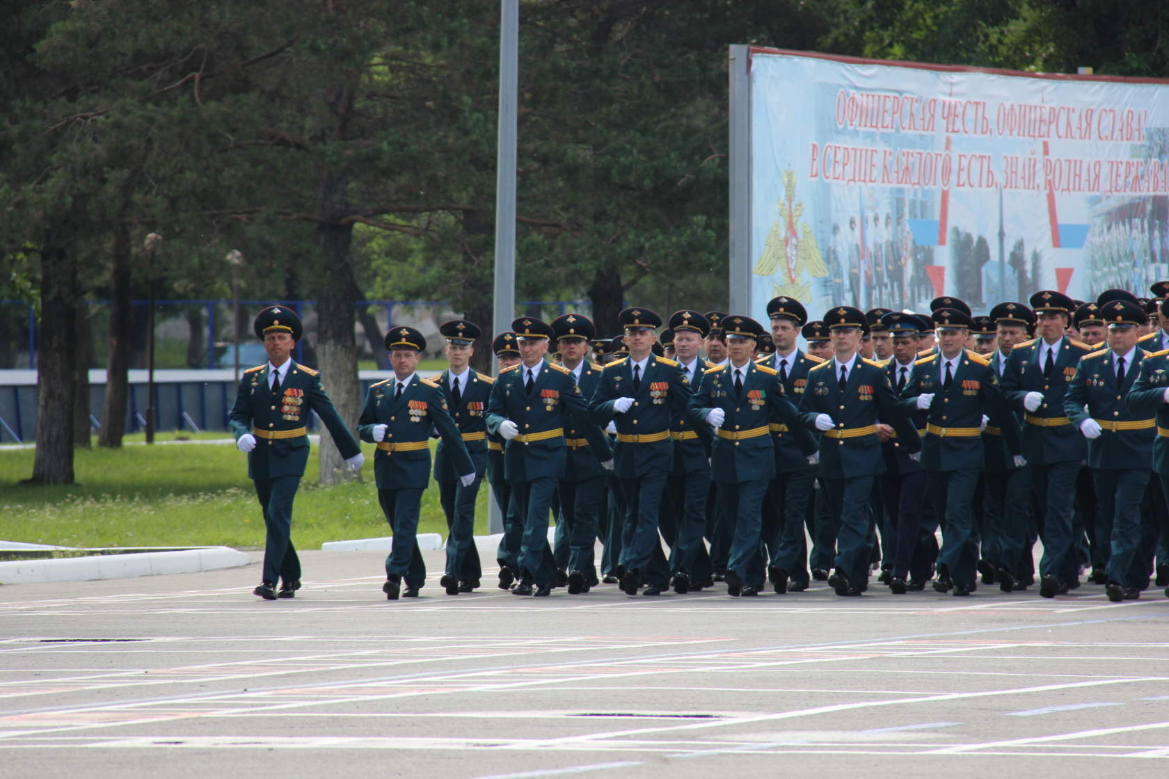 На холодном ветру, голоса от команд огрубели